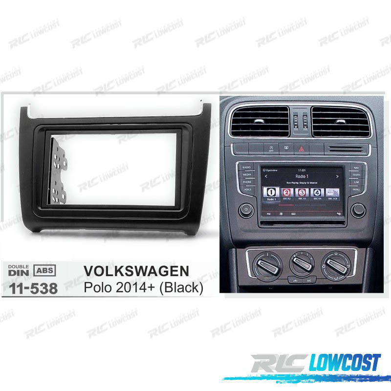 MARCO NEGRO COMPLETO RADIO 2-DIN PARA VOLKSWAGEN VW POLO 14+