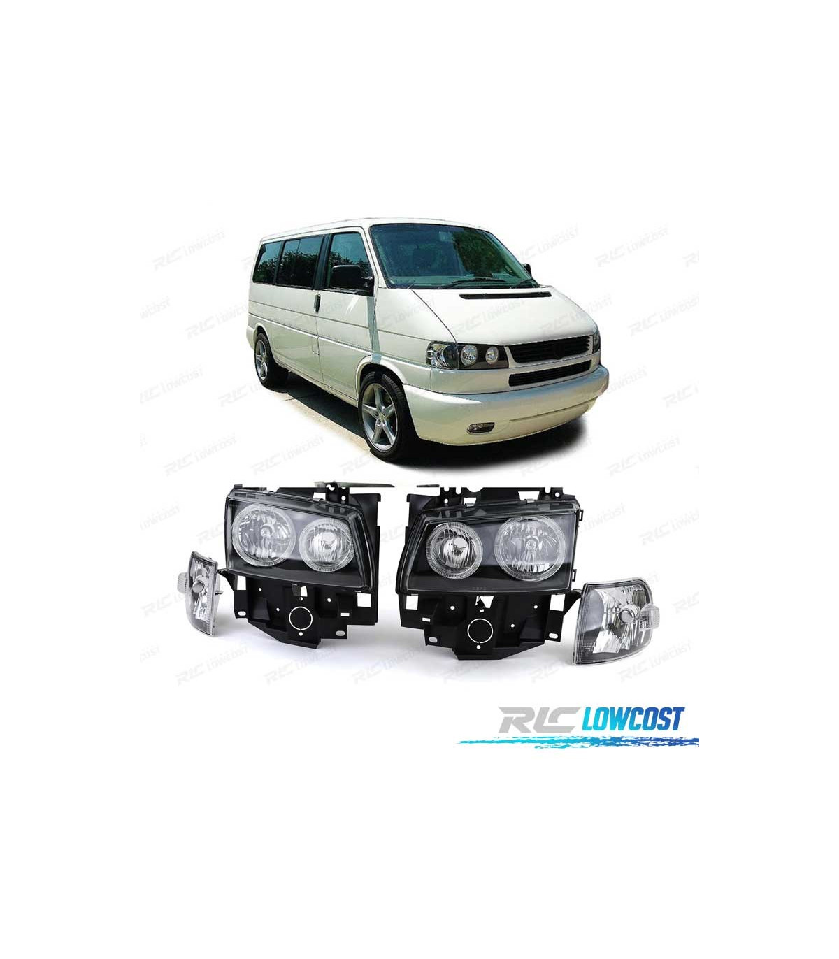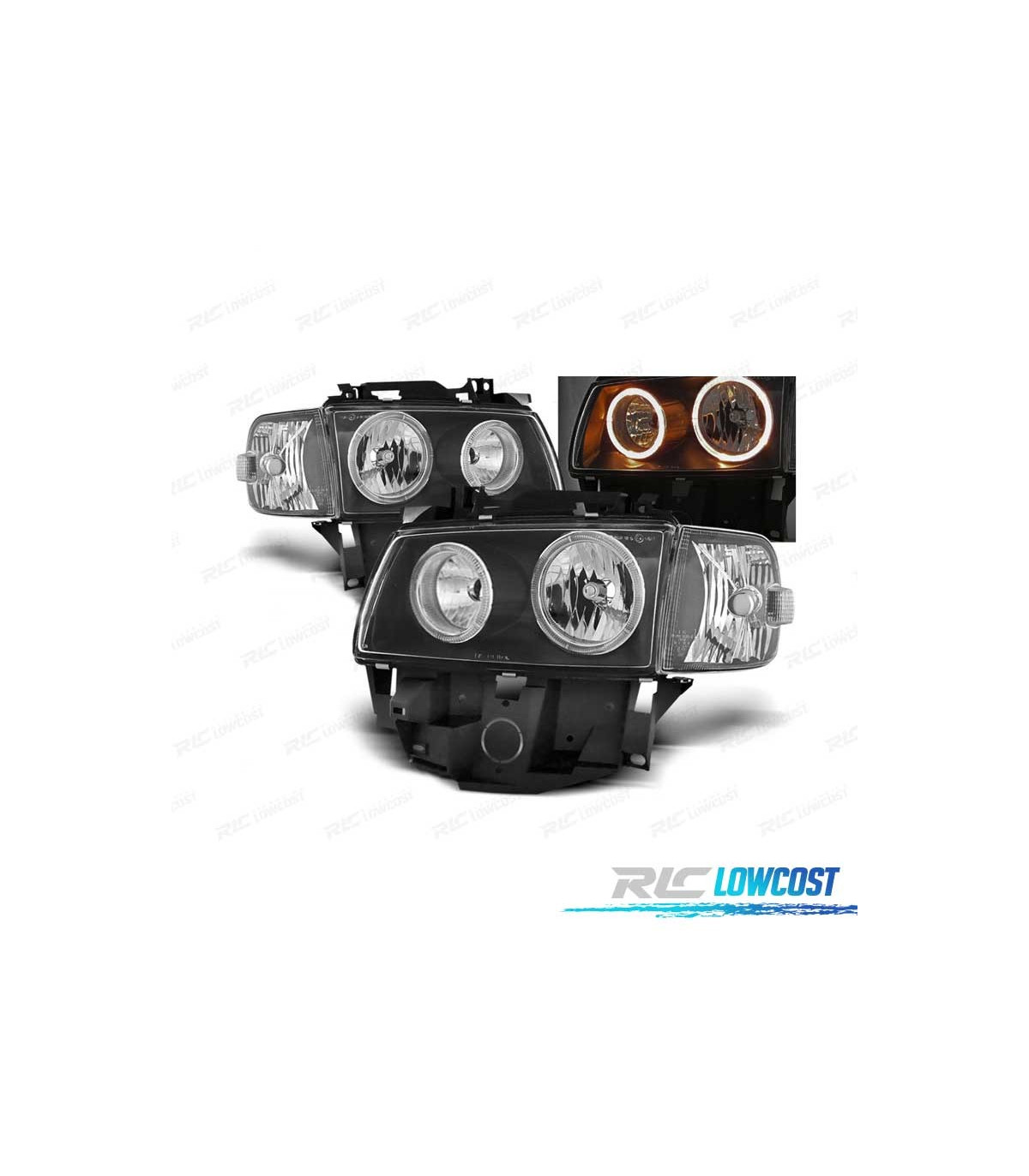 FAROS VOLKSWAGEN VW T4 CARAVELLE MULTIVAN 97-03 OJOS DE ANGEL FONDO NEGRO