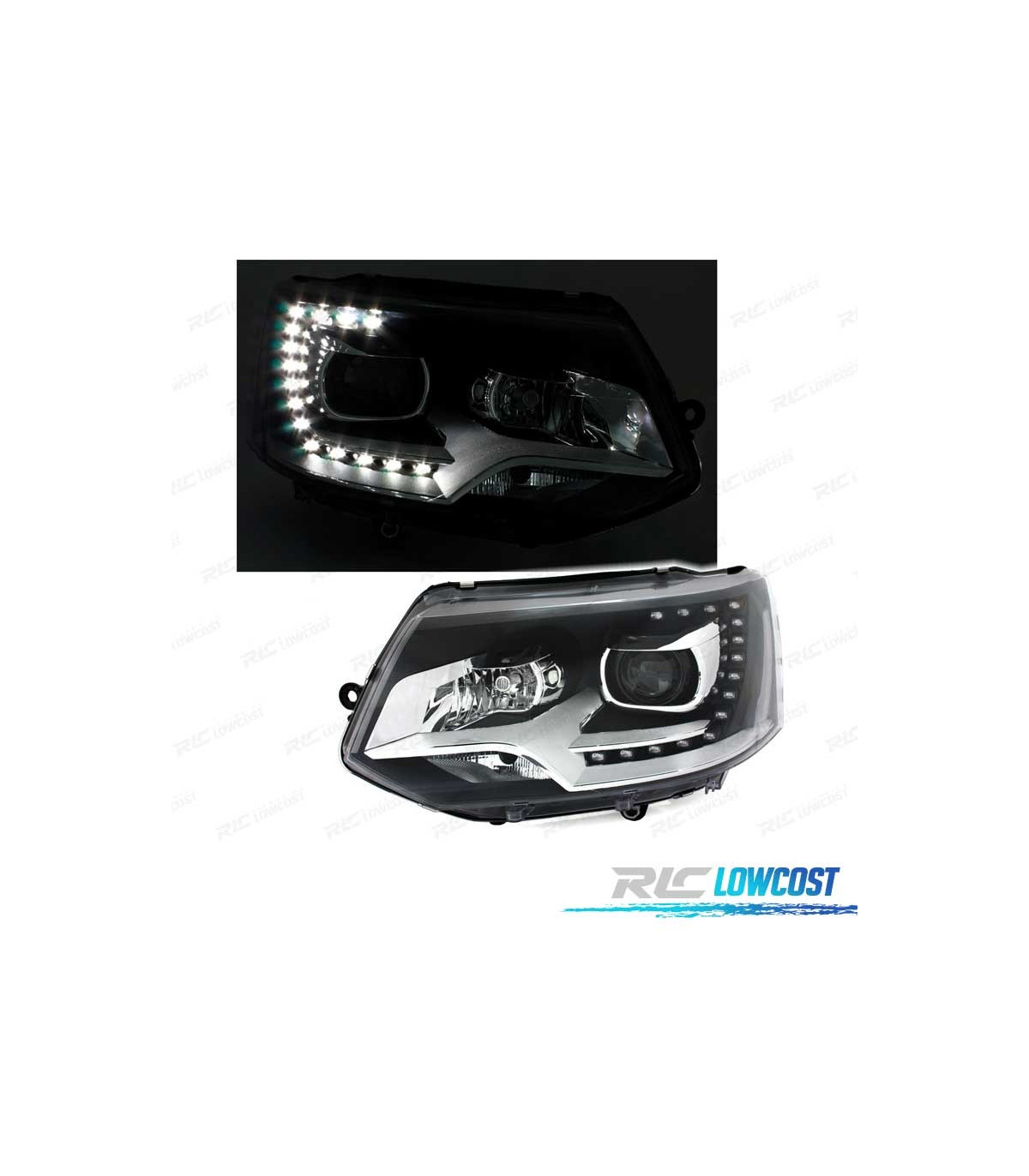 FAROS VOLKSWAGEN VW TRANSPORTER T5 10-15 LUZ DIURNA FONDO NEGRO TIPO XENON