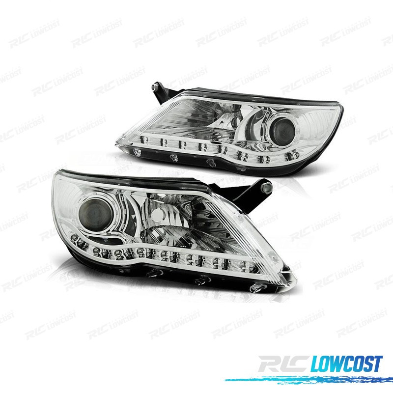 FAROS VOLKSWAGEN VW TIGUAN 07-11 LUZ LED DIURNA FONDO CROMO