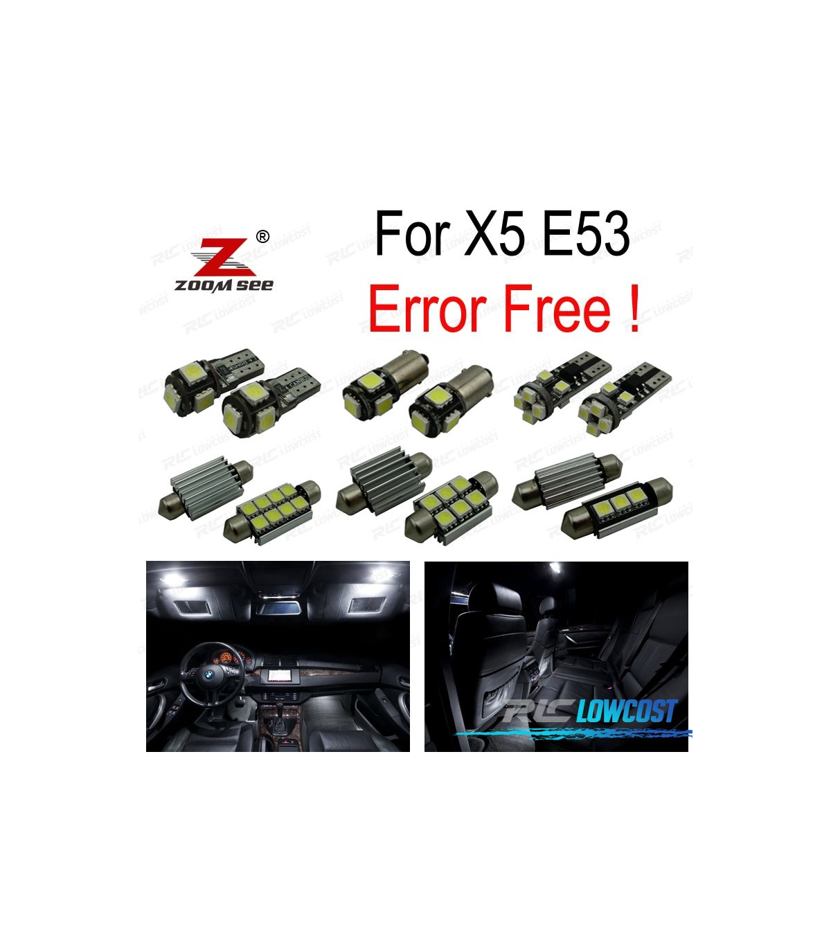 KIT 22 BOMBILLAS LED INTERIOR BMW X5 E53 3.0I 4.4I 4.6IS 4.8IS 2000-2006Estos no son productos originales de la marca BMW.El artículo ofrecido, solo es compatible para los modelos de vehículos descritos.
