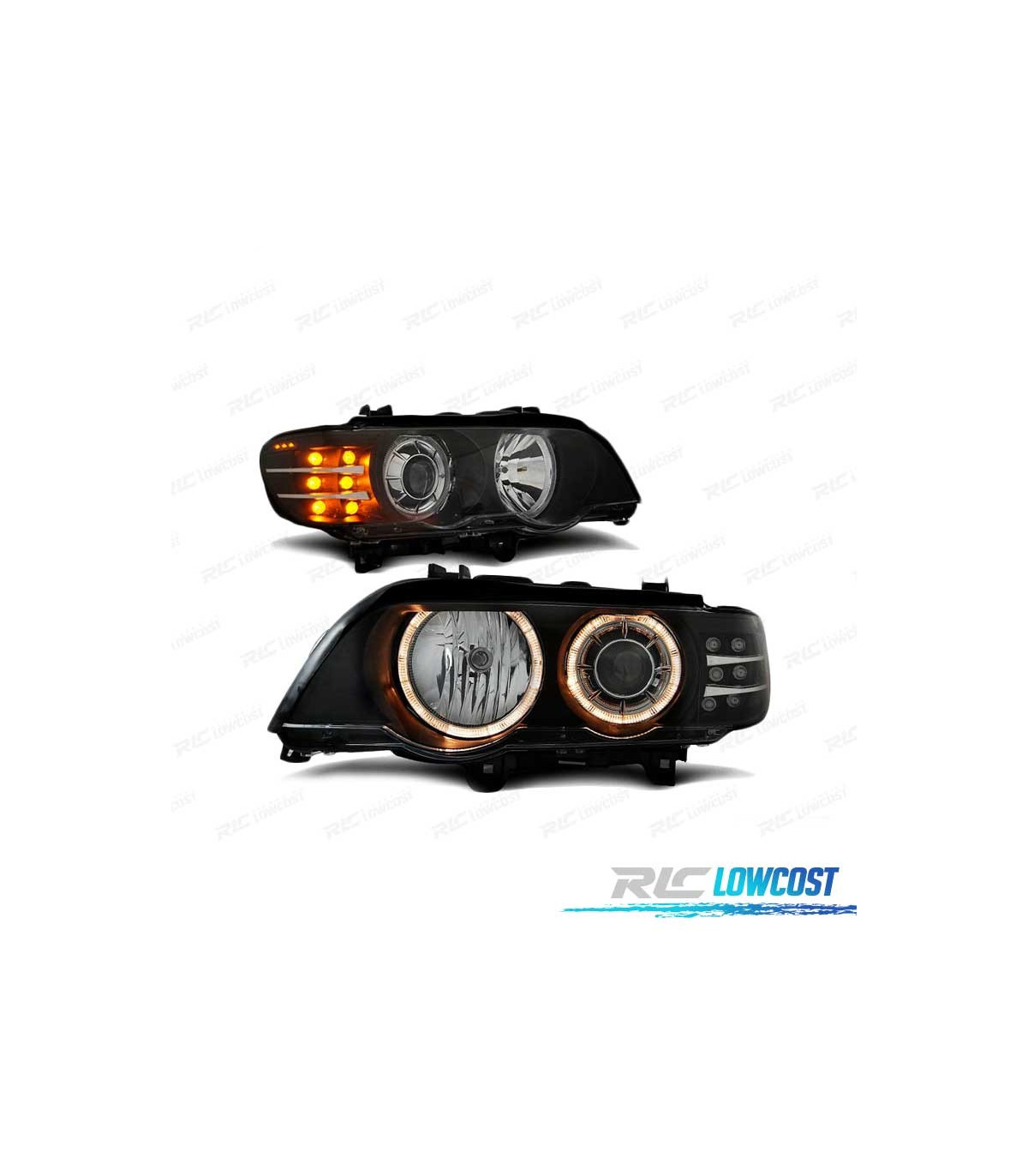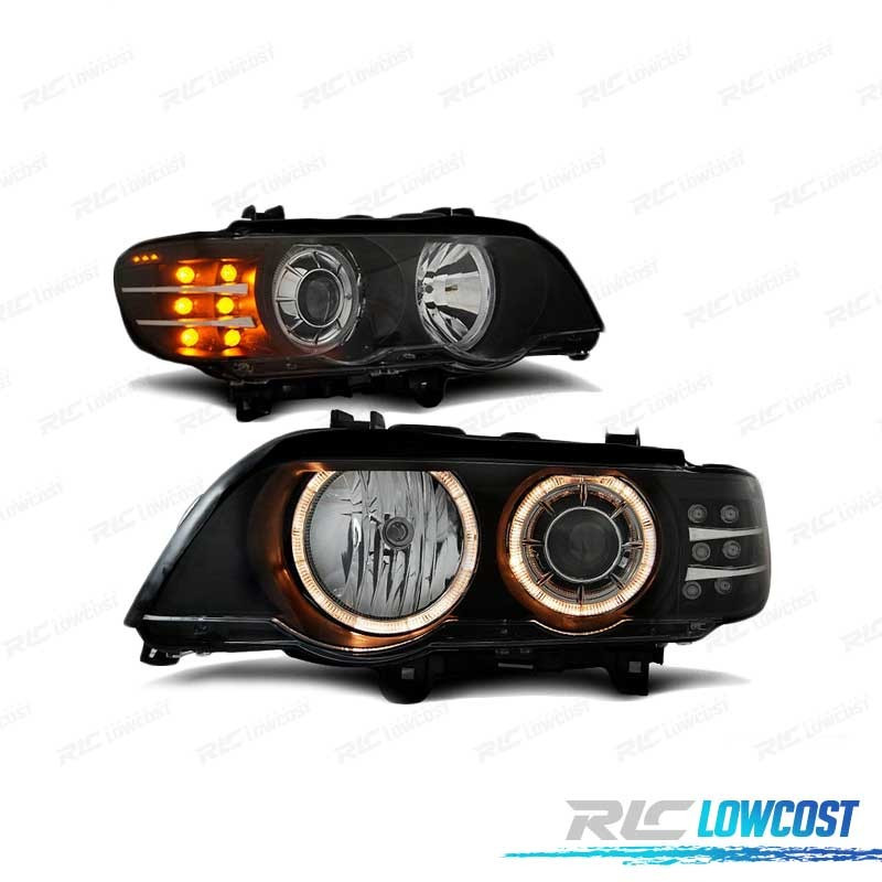 FAROS OJOS ANGEL BMW X5 E53 99-03 FONDO NEGRO INTERMITENTE LED